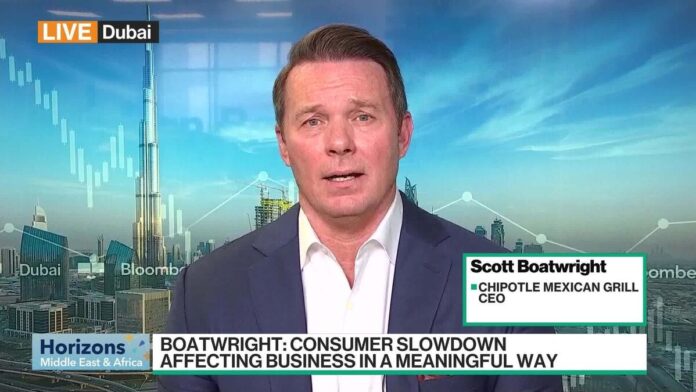 2025 has been rough for Chipotle with the fast-casual chain cutting its outlook for the year 3 times. Rising costs and diners pulling back on eating out is hitting the bottom line but the Mexican food chain is expanding further in the Middle East and Asia. Scott Boatwright, Chipotle Mexican Grill CEO spoke to Bloomberg’s Jennifer Zabasajja on Nov. 11 on Horizons Middle East and Africa ahead of the grand opening of their new store in Dubai’s City Walk. (Source: Bloomberg)