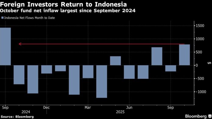 Global funds are returning to Indonesian stocks in a sign of improving sentiment toward the macro outlook for Southeast Asia’s largest economy.